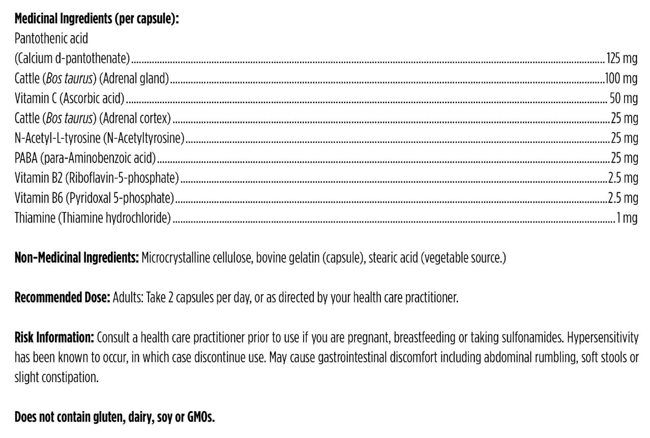 • Combinaison synergique de vitamines, d'acides aminés et de glandes surrénales pour favoriser une santé surrénale optimale
