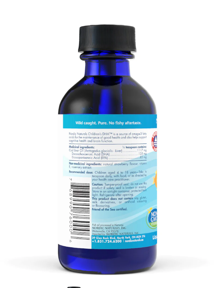 Les enfants du monde entier adorent le DHA pour enfants Nordic Naturals à la fraise. Fabriqués exclusivement à partir de notre huile de foie de morue arctique Gold Standard, ces produits sont riches en DHA oméga-3, essentiel au bon fonctionnement et au développement cérébral et nerveux. Le DHA pour enfants contient également des niveaux sains de vitamines A et D. Efficacité et sécurité prouvées. Toutes nos huiles sont purifiées des toxines environnementales sans produits chimiques ni chaleur excessive, et surpassent les normes internationales strictes de qualité et de sécurité des huiles de poisson.