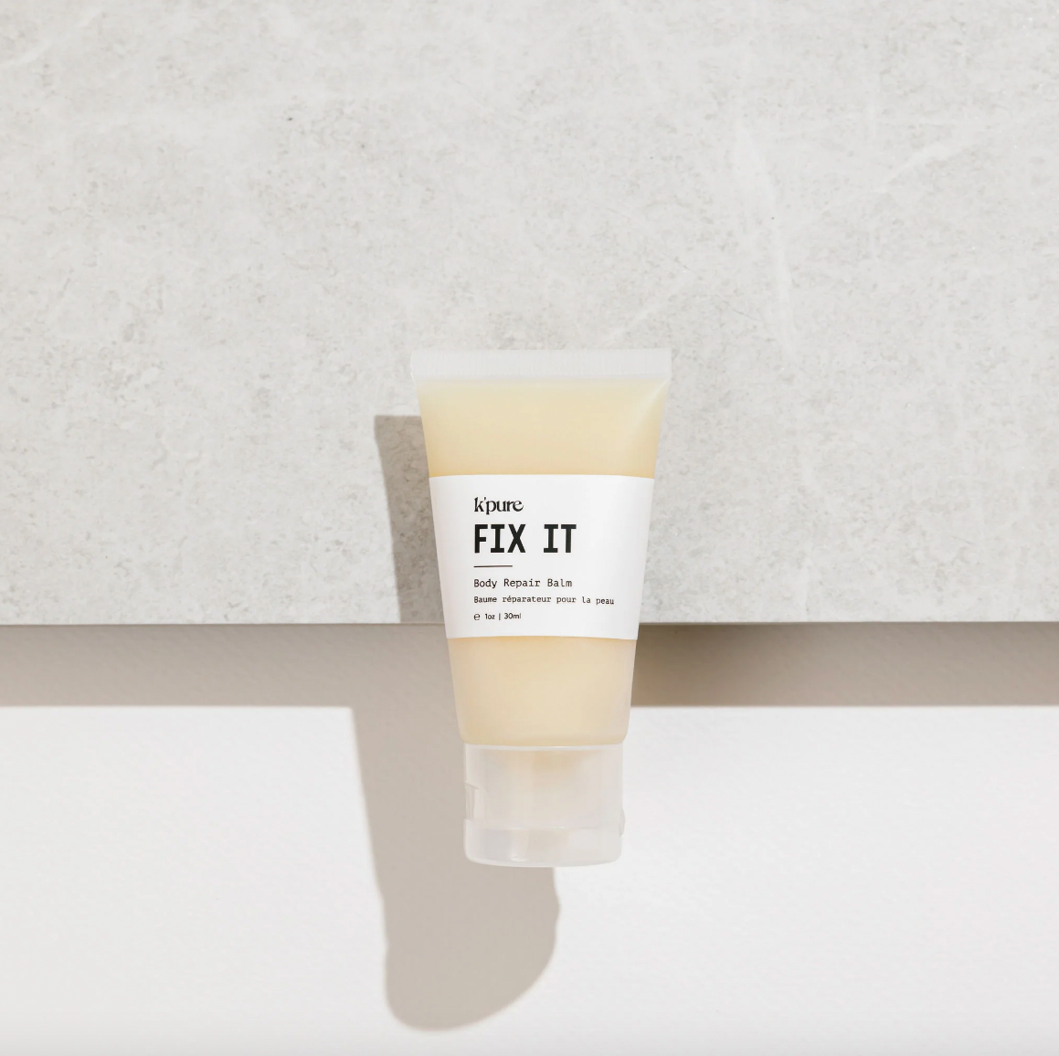 ATTENTION : Votre baume peut devenir granuleux s'il fond. C'est facile à réparer ! Placez votre tube de Fix It au micro-ondes quelques secondes pour le faire fondre. Pas trop longtemps ! Juste le temps de faire fondre le baume. Placez ensuite le tube directement au réfrigérateur pour qu'il se raffermisse. Votre baume retrouvera sa consistance crémeuse !