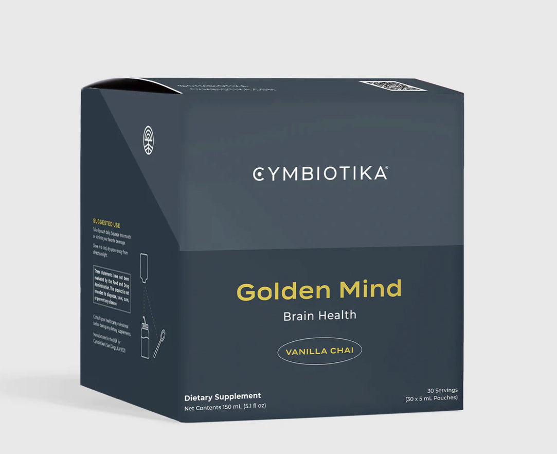 Golden Mind de Cymbiotika stimule les performances mentales optimales et protège contre le déclin cognitif lié à l'âge. Cette formule favorise la santé intestinale et renforce l'axe intestin-cerveau en améliorant la communication entre le tube digestif et le système nerveux central.