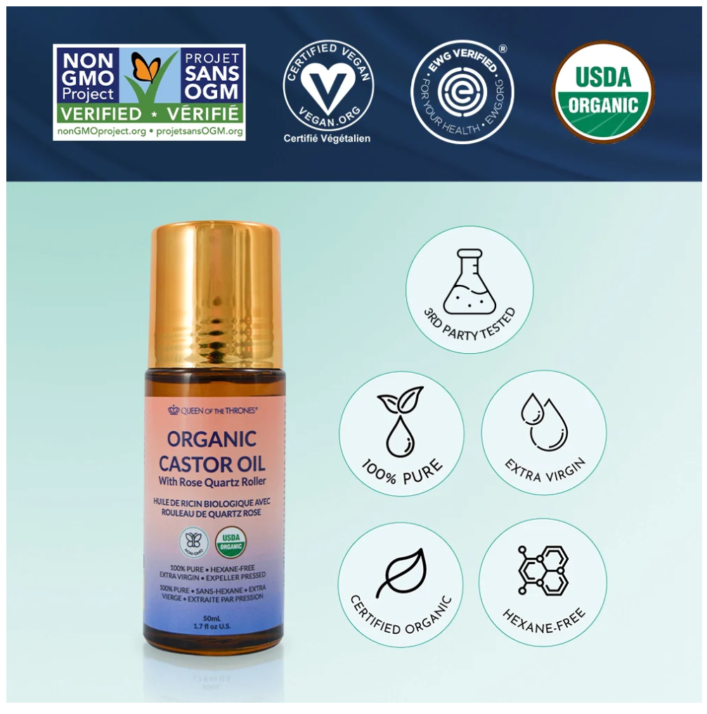 Your Castor Oil practice just got even easier! Your favorite Queen of the Thrones® Organic Golden Castor Oil now comes in an easy-application roll-on.